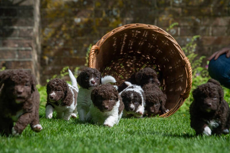 The first UK Wetterhoun litter was born on 5th April 2023. We named the puppies after key members of the England rugby squads, past and present. There were 8 puppies - 3 girls and 5 boys, 4 brown and white and 4 brown. All puppies found wonderful homes in the UK in a variety of settings and we keep in touch to share the fun. Many owners changed the puppy names, but Marlie (named after the England Captain Marlie Packer) stays the same. We hope she will make Aafke a Grandma in 2026. We certainly approve of our new "son in law" Brandle and wish them all the best for their proposed "tie"!